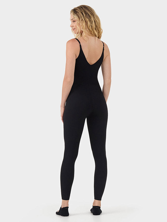 This street-ready one-piece is perfect for days you don't want to think about putting together an outfit. Thanks to the built-in bra, you really can throw it on and head out the door. Just be warned: may trigger jumpsuit envy. Designed for movement, studio-to-street. Sweat-wicking and quick-dry fabric. Light support for low-impact activities. Built-in shelf bra with removable pads. Our signature TaviSculpt™ fabric, lifts, smooths, and flatters. It delivers compression in all the right places, so you can look and feel good on and off the mat.