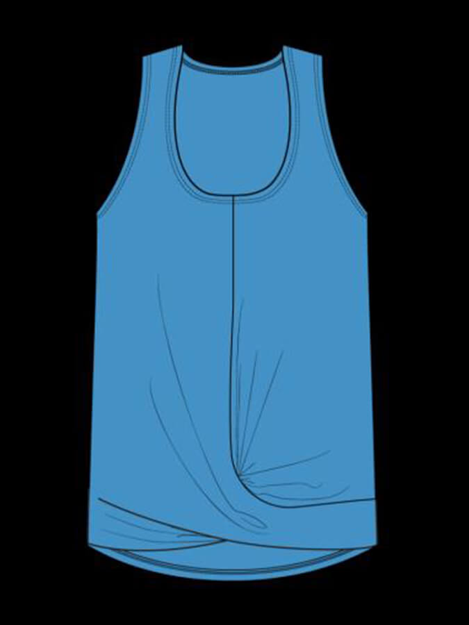 FIT: Scoop neckline, relaxed fit. Stylized twist detail at front hem. Sits at high-hip.