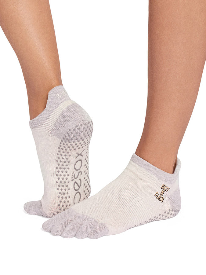 Low rise profile hugs your foot below the ankle and features ToeSox patented non-slip sole for secure footing on any surface.